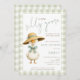 Cute Silly Goose Sage Gingham Baby Shower Invitation