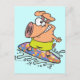 cute silly surfer surfing piggy pig postcard