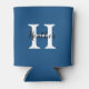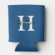 Cute Simple Blue & White Monogram Name + Initial Can Cooler