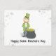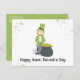 This design features a St. saint Patrick's Patrick's day, a cute simple cartoon whimsical fun, leprechaun pot of gold, an Irish Ireland luck lucky happy, a minimalist minimal simple illustration, a green gold simplistic modern cute, for March saint St. patty patty's, an adorable funny humour quote saying, a St. Patrick's day greeting cards, saint Patrick's day budget postcards.