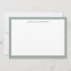 A simple personalised note card design with a pretty sage green border and modern grey typography at the top which can be easily personalised with your name. The back of the note card has the same sage green colour, with a pretty fern pattern in white.