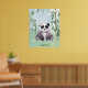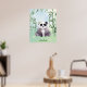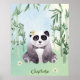 Illustration of a black and white cute panda bear sitting near green watercolor bamboo. It is an excellent design for panda lovers or fans of super cute animals. The colors are pastel and look like a watercolor painting. This print will brighten up any kid's bedroom or playroom. Can be personalized with your child's name.