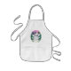 A fun Kids' White Apron, with two cute Penguins having fun, ice-skating, in a snowy landscape with fir trees and a setting sun; from a hand-painted paper collage by Judy Adamson.