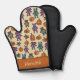 Add a cute touch to any kitchen this Halloween with this oven mitt that's ready to be personalised with a name. It features a pattern of cute stuffed animals with part of their skeletons showing along with patchwork style pumpkins.