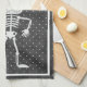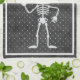 Add a fun seasonal touch to the kitchen with this Halloween themed kitchen towel.. Created with a black grunge dotted background, little ghosts and a cute skeleton waving a greeting. Edit the text captioning if desired and done.