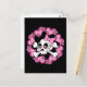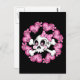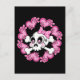 Cute skull and crossbones with polka dotted bow surrounded by pink hearts and flowers.
