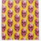 Cute skull pattern shower curtain with a cartoon illustration of a funny pink skull with rosy cheekbones and two cute ghosts in its eye sockets watching each other and smiling, little adorable spider standing on top of one of these spooky friends. This fun macabre design has bright psychedelic, trippy pink and yellow colours.