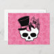 Cute Skull With Top Hat Rose Pink Bow Postcard