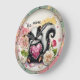 This charming circular wall clock showcases a whimsical watercolor-style illustration of an adorable baby skunk with large, expressive eyes. The skunk sits holding a sparkling pink heart featuring the embossed text "BE MINE" in white. The phrase "Be mine" is also written in a delicate black script font above the character. Surrounding the skunk are soft pink and white roses with green leaves, set against a background of artistic pastel splashes. The entire design is enclosed within a multi-colored decorative border featuring pink, teal, and gold tones. A clear clock face border displays black numbers from 1 to 12, with black clock hands centered over the main illustration.