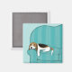 Art illustration of a happy Beagle resting at home on the couch. This sleeping puppy dog loves his or her spot on the sofa. A cute fridge magnet for dog lovers. Check out Jenn’s Doodle World for more products featuring this original dog cartoon and lots of fun pet lover gifts.