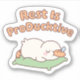 A cute white duck is resting and sleeping on a pillow. The funny caption reads "Rest Is ProDucktive". Amusing doodle for duck lovers! ♥