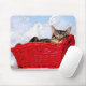 Cute Sleeping Kitten in Bright Red Basket Photo Mouse Pad