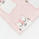 A blanket with a cute pattern of sleeping kitty cats looking peaceful and happy. On a pink background.