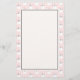 Stationery with a pattern of cute sleeping kitty cats. On a pink background. A white rectangle layered over top.