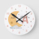 Create a dreamy and calming baby nursery with this personalized sleeping moon wall clock in soft pastel peach and pink tones. Featuring a cute crescent moon with eyelashes, fluffy clouds, tiny stars, and a customizable name, this adorable design is perfect for a baby girl’s room, kids’ bedroom, or toddler playroom.
