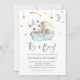 Twinkle twinkle little star! Invite family and friends with this customisable baby shower invitation. It features a cute watercolour sleeping baby panda with a blue cloud and moon and gold stars. Personalise by adding your own event details. This panda baby shower invitation is perfect for It's a Boy baby showers.