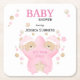 Cute Sleeping Teddy Bear Twin Baby Girls Shower Sq Square Paper Coaster