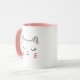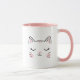 Cute Sleepy Kitty Face Pink & White Mug