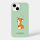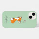 Cute sleepy little fox with large ears and bushy tail is sitting and yawning. A small butterfly is hovering above.