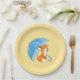 Cute Sleepy Little Fox under Umbrella on Yellow Paper Plate