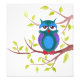 Cute sleepy owl on a tree Cartoon painting Photo Print