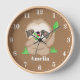 Cute sloth add name girls room decor clock