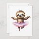 Cute sloth ballerina dancing ballet holiday postcard