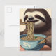 Cute Sloth Eating Ramen Woodblock Print Postcard