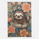 Cute Sloth Elegant Floral William Morris Inspired Tea Towel