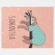 Cute Sloth Blanket - This comfy blanket features a sleepy sloth sleeping while hanging on a branch in green pyjamas. The background is in pink, decorated with stars and hearts. Perfect for an afternoon nap or stay snug as a sloth as you drift into a deep slumber with this cute blanket. Sloths know how to relax so why not get in on the act. A fantastic gift option or just a decorative funky touch to your own home. Personalise this cute design by adding your or a friend's name to it.