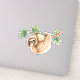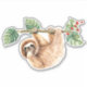 Contour sticker with an adorable sloth hanging upside down from a tree branch. Tree branch is decorated with tropical leaves and berries.