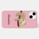 Cute Sloth on Tree Animal Illustration Pink Case-Mate iPhone Case