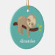 Cute Sloth on Tree Kawaii Animal On Teal Ceramic Ornament