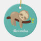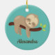 Having this cute sloth ornament on your Christmas tree will be sure to get a few smiles. With it's adorable little sloth hanging on a tree, on a light teal blue background, and customised with a name, it's sure to be a one of a kind!