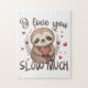Cute sloth romantic fun pun I love you slow much Jigsaw Puzzle