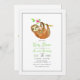Celebrate the arrival of a little one with this charming sloth-themed baby shower invitation. Featuring a watercolor illustration of a sweet mother and baby sloth hanging from a tree branch, this design radiates warmth and whimsy. The clean layout, delicate green accents, and playful typography make it perfect for a gender-neutral baby shower. Fully customisable to include your event details, this invitation is an endearing way to bring loved ones together.