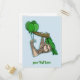 A cartoon illustration of a sloth hanging from a palm tree, holding green polka dot birthday party balloons a great design for kids having a sloth party or anyone who loves sloths.