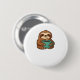 Cute Sloth with Coffee Mug – Cosy Relaxed Animal A 6 Cm Round Badge