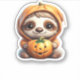 Cute Sloth with Pumpkin Halloween Cartoon Vector I