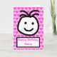 Cute cartoon of a big smiling face with the words 'Happy Birthday'. Card has a pink background with hearts. Easily personalise this card by editing the template text on the front and inside. Thanks for viewing my designs!