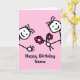 Cute cartoon card with happy faces popping in from each side of the card and holding a bunch of flowers. Card has a pink background but it's easy to edit this to a different colour. Easily personalise this card by editing the template text on the front and inside. Thanks for viewing my designs!