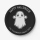 Cute Smiling Ghost Happy Halloween Black And White Paper Plate