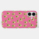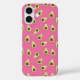 Adorable avocado patterned iPhone case features an allover pattern of smiling and winking kawaii avocados in a cartoon style, on a vibrant pink background. A cute and trendy design that's perfect for avocado lovers or kawaii fans!