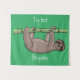 Cute smiling sloth on bamboo cartoon illustration tapestry