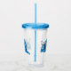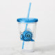 This acrylic drink tumbler with straw and lid has a cute smiling snail with white eyes and a black outlined blue shell.