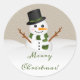 Cute Smiling Snowman With Merry Christmas Text Classic Round Sticker