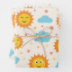Cute Smiling Sunshine with Clouds and Stars Patter Wrapping Paper Sheet