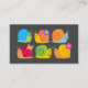 A business card suitable for a children's bookshop or children's toys or kid's products business. Suitable for a shop or online business. This card features a cute rcolorful snails design. Background colour and text can be fully customised to suit you needs.
