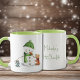 Cute mug with an illustration of a Snowman and its two best friends the bear and the dog. Great gift for the upcoming holidays. Personalise the text with your own message. Illustrated and designed by Patricia Alvarez.