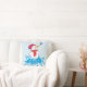 Cute Snowman Baby`s First Christmas baby pillow. Cute smiling snowman with a snowflake on his nose. The background is a blue colour splash with white snowflakes. Add your name and year of birth.
